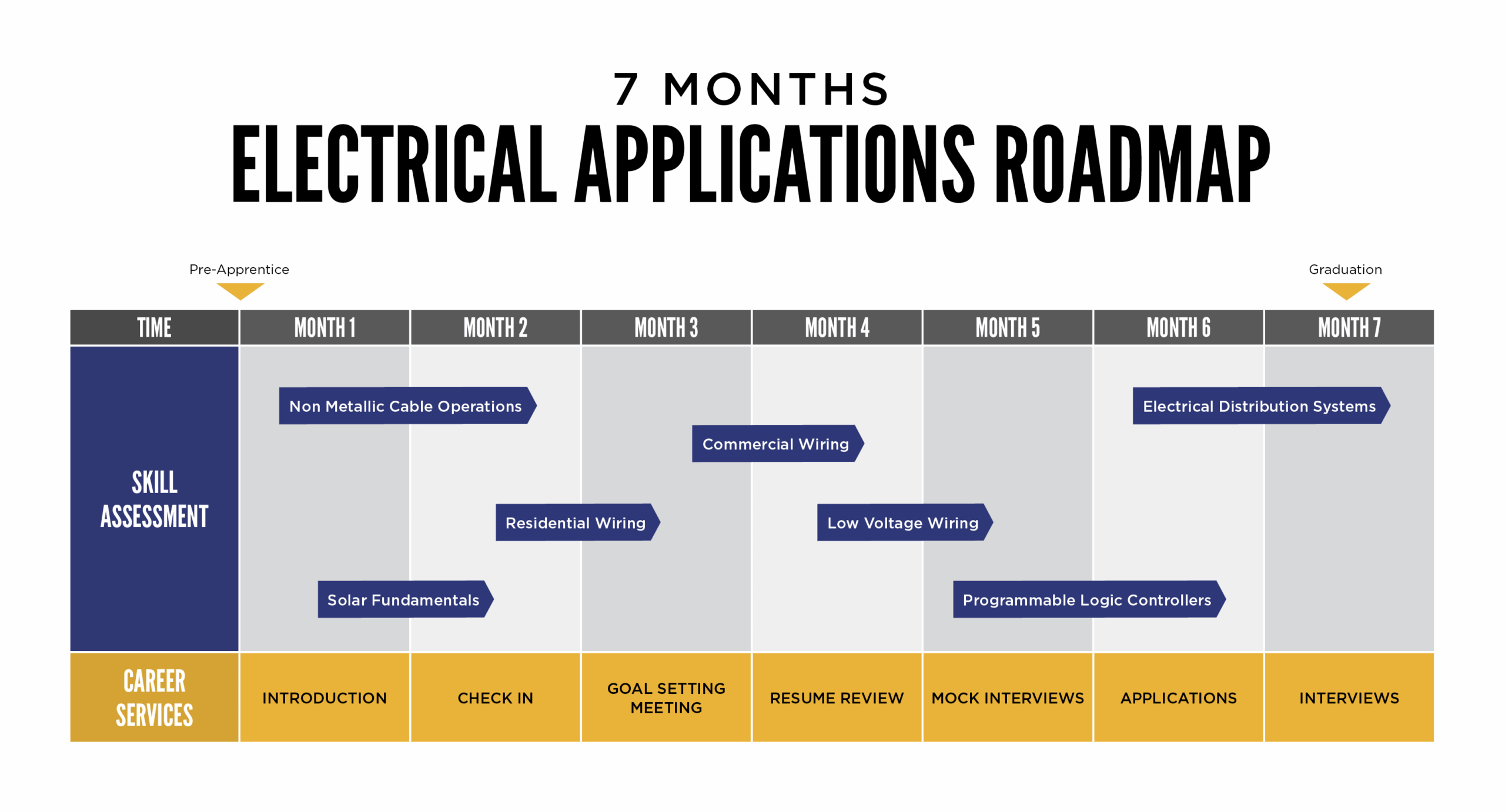 We work hard to find the right program and the right schedule to help you succeed. Contact us for more information on upcoming class times and start dates for the Electrical Applications program.